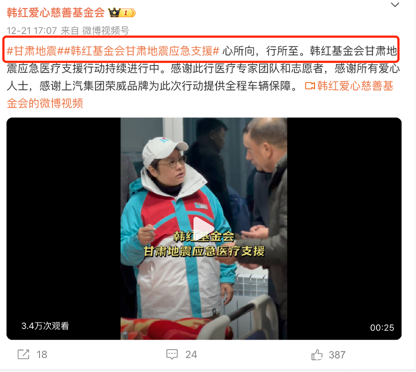 三年前的武汉,暑期的水患,以及目下甘肃灾情,韩红都是第一时分在内娱作念出了法式步履。